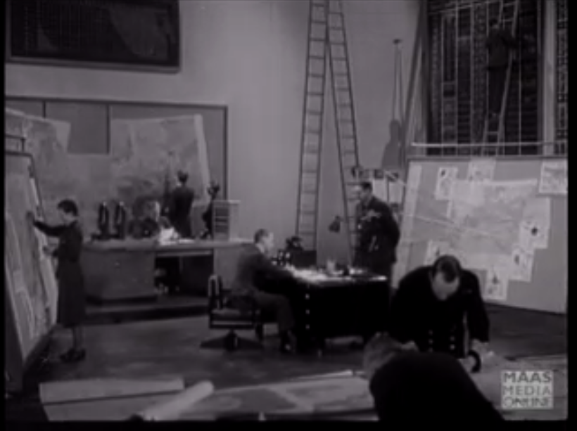 This episode is of interest for reasons that spiral beyond my original post.  Much of the discussion of the histories/geographies bombing – my own included – focuses on the visual, and there are good reasons for this.  During the combined bomber offensive against Germany, as I try to show in ‘Doors into nowhere’ [see DOWNLOADS], what today would be called the kill-chain was choreographed through a sequence of air photographs, maps, charts and visual displays.  In 1941 Harry Watt produced an extraordinary drama-documentary, Target for Tonight, for the Crown Film Unit and the Ministry of Information that tracked this visual sequence in vivid detail.  The film used RAF personnel (not actors); it was shot at RAF Mildenhall and on special sound stages at Elstree and Denham, where Bomber Command’s Operations Room at High Wycombe was recreated (with twice the number of available squadrons listed on the walls); and it followed the fortunes of  a Wellington bomber – also “F for Freddie” – on a strike against a “military-industrial target”, an oil refinery at Freihausen.