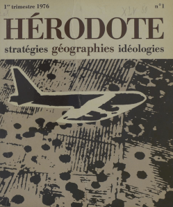 It’s thirty-odd years since Yves Lacoste insisted that La géographie, ça sert, d’abord, à fair la guerre (1976) and, as Gavin Bowd and Daniel Clayton show in “Geographical warfare in the tropics: Yves Lacoste and the Vietnam War”, he knew what he was talking about (he was also the editor of Hérodote, left): their remarkably rich essay was published in Early View by the Annals of the Association of American Geographers earlier this year. As I say, another geography.