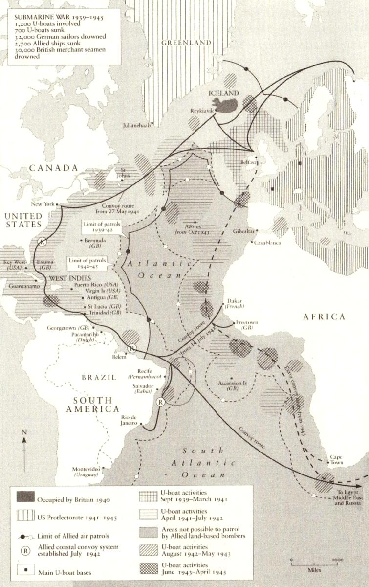 Now Creveld’s argument was limited to ground forces – he said nothing about sea power or air power – and was confined to war in Europe, and these are significant caveats.  During the Second World War the Battle for the Atlantic was crucial.  Churchill famously declared that ‘Never for one moment could we forget that everything happening elsewhere, on land, at sea, or in the air, depended ultimately on its outcome.’   There is a rich literature on convoys and submarine attacks that I’m only just beginning to explore.  Although the Allies lost 3,500 merchant ships and 175 warships, however, more than 99 per cent of ships sailing to and from the beleaguered British Isles survived the crossing.