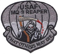 You might also shrug your shoulders and think “Who cares?”, except that those patches can indeed disclose information about the projects they simultaneously conceal and reveal. And this week Chris Cole at Drone Wars UK published a selection of patches worn by USAF and RAF drone pilots. Described as “morale patches“, designed to raise the morale of the units they represent, most of these don’t tell us anything we didn’t already know about their remote operations – the casual way they turn killing into a cartoon is remarkable, but it’s there in the names of the aircraft they fly: