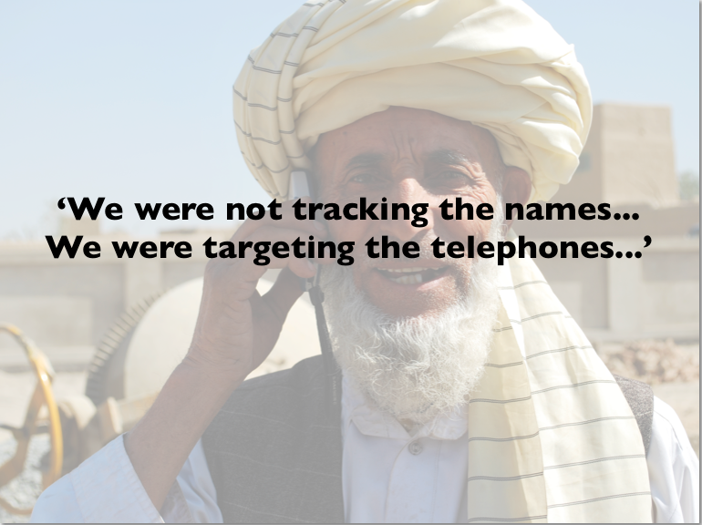 There are several lists of so-called High Value Targets, but the operational problem is, as he concedes, ‘We’re not going after people – we’re going after their phones.’