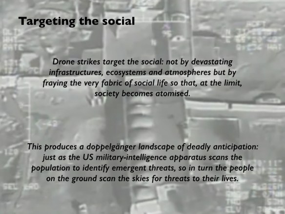 This is, in part, what I tried to capture in my early essay on ‘The everywhere war’, and I’m now busily re-thinking it for my new book. More on this in due course, but it’s worth noting that the Trump maladministration’s National Defense Strategy, while recognising the continuing importance of counter-terrorism and counterinsurgency, has returned the Pentagon’s sights to wars between major powers – notably China and Russia (see also here)– though it concedes that these may well be fought (indeed, are being fought) in part through unconventional means in digital domains. In short, I think later modern war is much more complex than Saskia acknowledges; it has many modalities (which is why I become endlessly frustrated at the critical preoccupation with drones to the exclusion of other vectors of military and paramilitary violence), and these co-exist with – or give a new inflection to – older modalities of violence (I’m thinking of the siege warfare waged by Israel against Gaza or Syria against its own people).