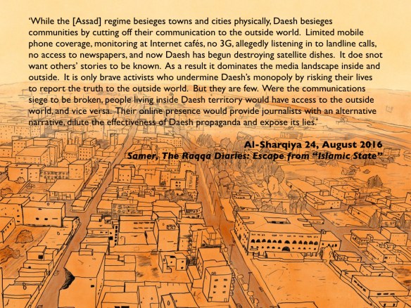 I do not mean that last sentence as a standard disclaimer, and the most direct way I can sharpen the point is by giving space to the (too short) story of a small group of courageous activists who made their home in Douma during the siege: