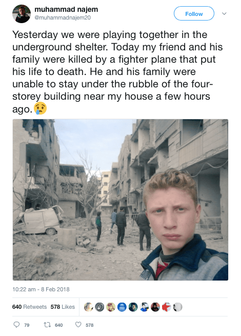 And those who remained inside East Ghouta, as the header to this post says, were all dying slowly. As one aid worker inside East Ghouta put it yesterday, what has happened since has been ‘wholesale slaughter witnessed by a motionless world.’