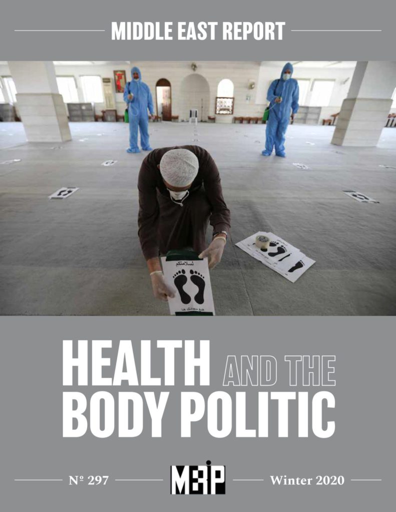 Health and health care have become increasingly ungoverned over the past few decades, in tandem with a broader breakdown of the body politic. Health care workers are finding it increasingly difficult to work in settings of violent conflict and insecurity, rapidly declining health care systems, pervasive corruption and widespread economic mismanagement—all amidst the waning capacity of states to improve the health and wellbeing of their populace. While the Middle East region trains a lot of doctors, few end up staying. The winter issue of Middle East Report explores the interactions of the body politic with health and medicine and examines the entanglements of physical bodies in the institutional and political processes that govern them. The articles in this issue explore a range of different landscapes and ecologies of politics and health care, bringing the questions and problems of health and illness into the analysis of geopolitics and political economy.