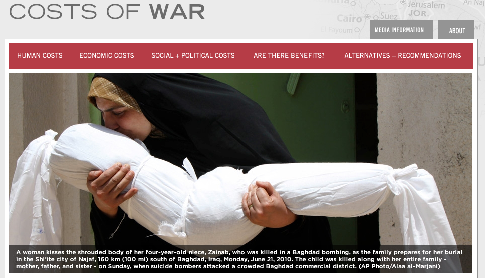Neta estimates that 22,000 ‘collateral damage deaths’ occurred in Afghanistan and Iraq between 2001 and late 2012, and if Pakistan and Yemen are included then the total rises to 38,000. Her book unpacks that awful term, ‘collateral damage’; she is co-director of the Costs of Warstudy which, as you’ll see, is also about much more than accountancy: