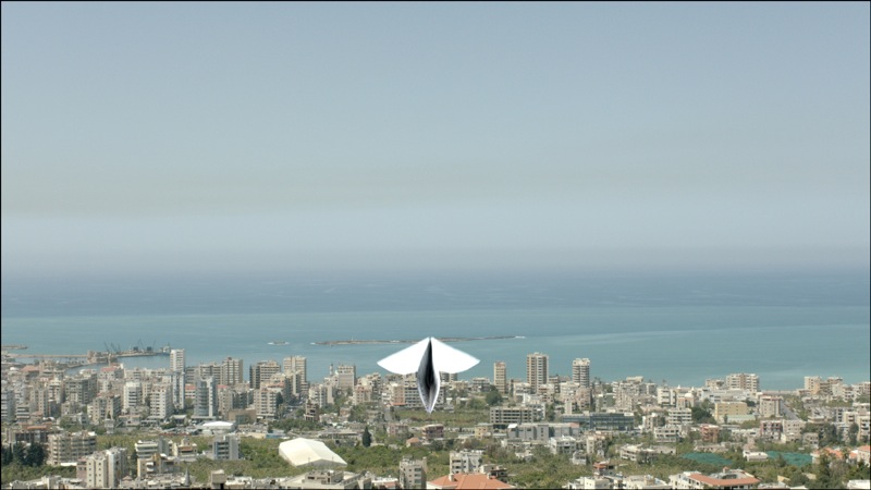 Zaatari was born in Saida – in fact his father founded the school that was the target of the IAF attack – and the film that is the heart of the art-work is, like Tamir’s decision, an intensely personal one whose resonances reach far and wide. Zaatari met with Tamir, and the film affirms the Israeli pilot’s original impulse to fly: hands draw paper aeroplanes and, at the end of the film, two boys climb up to the roof of the school and launch them into the air. The film is cut with family photographs and Zaatari’s own diary entries from the invasion too: you can find copies of the film on You Tube starting here.