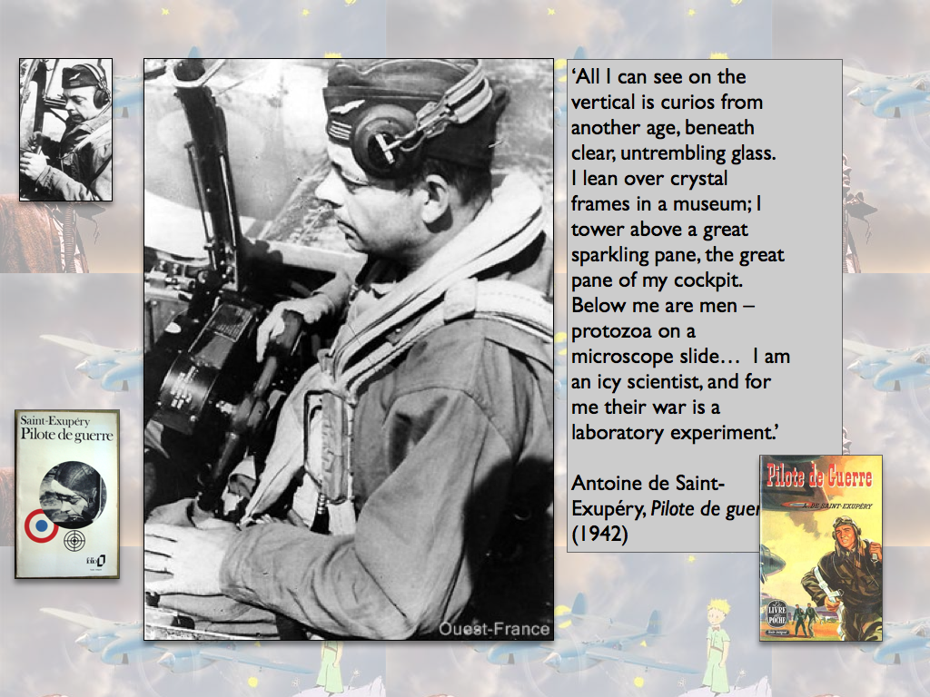But, as she also, notes Saint-Exupéry was ‘a famous war-time aviator’, and in that role he had a decidedly different view of things that speaks directly to (or rather from) the object record-film of the bombing: