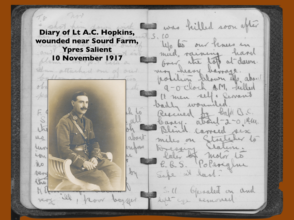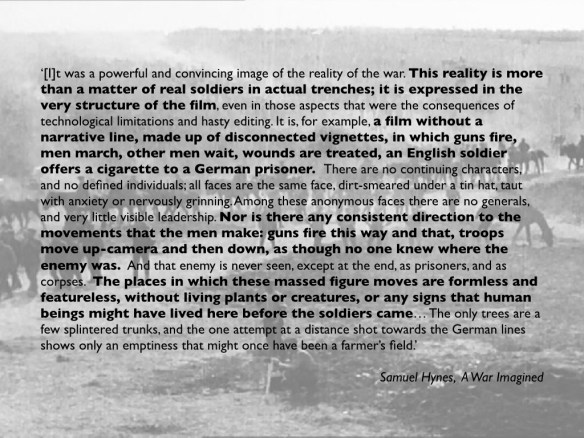I’ve been working on my essay on ‘Woundscapes of the Western Front, 1914-1918’. What follows is the section dealing with the act of being wounded, drawn from a series of diaries, letters and memoirs; it’s followed by a section fleshing out the concept of a woundscape which I’ll post in due course [for a preliminary sketch, see here].