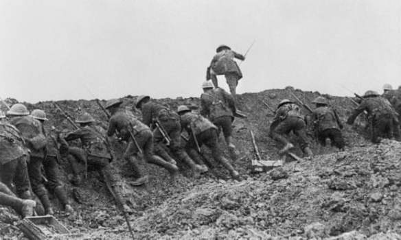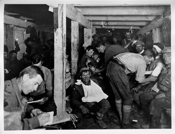 Trauma typically ruptures ordinary language – another of Scarry’s astute insights – and it is scarcely surprising that many witnesses to the broken bodies trailing across the battlefields should have turned to metaphor to convey the enormity of the toll.[5] On 1 July 1916, the first day of the battle of the Somme [above], a British officer found his trench ‘blocked with wounded men who were trying to make their way back to the dressing station’, and as Capt Radclyffe Dugmore surveyed the scene he was struck by the mechanical nature of both military violence and military medicine.