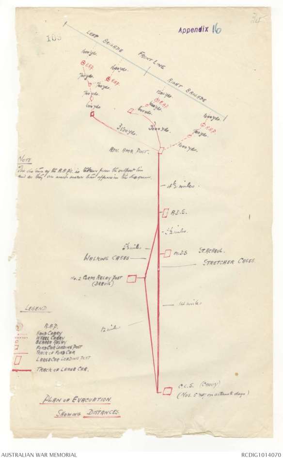 John Keegan once remarked that in military histories the wounded seem to ‘dematerialize as soon as they are struck down’. [1] This matters for more than historical reasons, however, because the wounded serve as a testament to what Elaine Scarry insists is ‘the main purpose and outcome of war’, which is to say injuring. This ugly fact, she argues, can be ‘made to disappear from view along many separate paths.’ [2] In order to bring it back, I attempt to have the wounded reappear on – and through – the paths they followed after they were injured. Most of what I have to say is confined to the British Army and its colonial and imperial counterparts from Australia, Canada, India, New Zealand and South Africa on the Western Front. [3] The details differ in other militaries and other theatres, but the elemental geography of casualty evacuation was a general one. My focus is confined to the effects of physical injury and I do not directly address what was eventually diagnosed as ‘shell shock’, but it will soon become clear that the trauma of being wounded was far from a purely physical affair and that it was suffused with emotional reactions that played a vital role in rescue and recovery. [4]