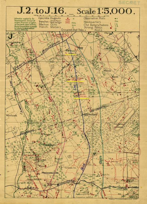 ‘I heard the explosion, and felt as though I had been punched rather hard between the shoulder blades, but without any pain. I took the punch merely for the shock of the explosion; but blood trickled into my eye and, turning faint, I called to Moodie [his company commander]: “I’ve been hit.” Then I fell…’ [13]