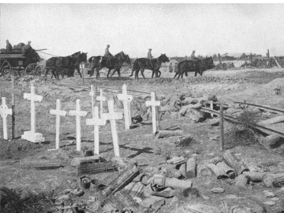‘Here was this line of men, who little more than an hour ago were normal men in the finest of health and strength, and now maimed, and with every degree of injury, they painfully made their way back to the human repair department. The well men were rapidly moving eastward in countless numbers, going forward to the assistance of their comrades, while the injured so laboriously dragged their way back, two human streams, the sound and the unsound. Before us, all energies were devoted to destruction; behind us, all human power and skill tried to repair the damage.’ [6]
