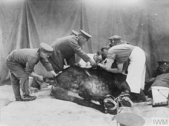 Hartnett’s pained allusion was evidently not to a serpent entwined around a staff, the classical symbol for medicine; the intended effect was altogether more venomous. [9] Still more sinister was the common imagery of the shambles and the slaughterhouse. Wilfred Owen described the infantry training camp on the French coast at Étaples as ‘neither France nor England, but a kind of paddock where the beasts are kept a few days before the shambles.’ In the sixteenth century a shambles was an open-air slaughterhouse, and the term was readily extended to the modern battlefield. Watching the stretcher-bearers file past after the Battle of Festubert with their burden of bloodied bodies one Guards officer recoiled in horror: ‘fine upstanding fellows only a few hours before’, they had become ‘nauseatingly repulsive’, ‘hideously injured carcases.’ Doctors sometimes had the same reaction and resorted to the same imagery. ‘Although but a middleman,’ confessed Capt Lawrence Gameson at a dressing station on the Somme, ‘one gets sick of blood’s smell and of the endless everlasting procession of red raw human meat passing through our hands.’If the injured survived they were consigned to a Casualty Clearing Station, what one senior medical officer – one of many, as it turns out – called his ‘Butcher’s Shop’, wherein Philip Gibb was nauseated by the ‘great carving of human flesh’. One chaplain remembered a surgeon who had been working 24 hours without a break: ‘In the middle of it all he turned away from one table and looked up as another one was being carried in, and he shook his head. He was covered in blood – we all were – and he said, “This isn’t a hospital, it’s a butchery.”’ [10]