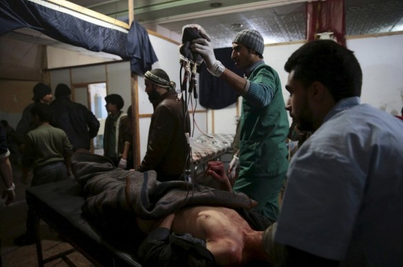 I’ve been on the road – I’m in London now for more archival work at the Wellcome, after a wonderful conference on “Drone imaginaries” at Odense – but I hope to post the next essay in my series on siege warfare in Syria shortly. It will address medical care under siege – a continuation and extension of my wider work on ‘surgical strikes’ on hospitals and medical facilities (see for example here: more under the GUIDE tab) – but in the interim here is a short post from Jonathan Whittallat Médecins Sans Frontières (MSF Analysis; also at al Jazeerahere) on the ‘bomb and siege routine’: