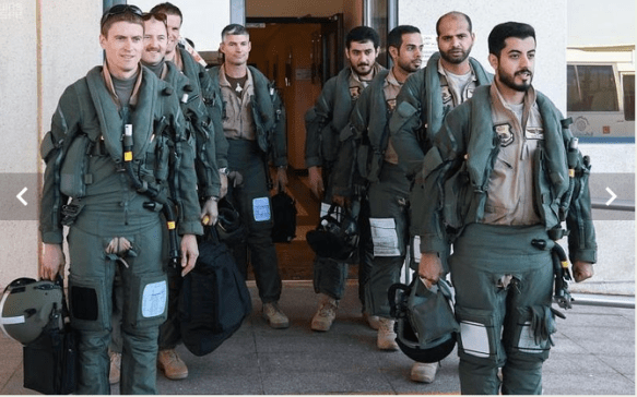 The image below shows crews from Britain’s Royal Air Force and the Saudi Royal Air Force involved in a joint training exercise, ‘Saudi British Green Flag 2018’. According to a report in Arab News:
