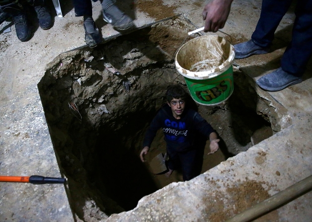 I haven’t been able to discover how extensive the system was (or, given the friction between the rebel groups, whether it was a system at all). It may be that some of the tunnels and trenches were connected, and the basements of new buildings in Douma were often connected to the subterranean grid. Still, I suspect that the Army officer who told CNN that ‘all of Ghouta is connected by tunnels’ was exaggerating; there must have been huge swathes of territory outside the networks. And given the often ambivalent and sometimes antagonistic relations between rebels and civilians, it’s unlikely that many people found sanctuary in the tunnels with the rebels: first-person testimonies describe, almost without exception, families leading a wretched existence in crowded, unsanitary basements and shelters.