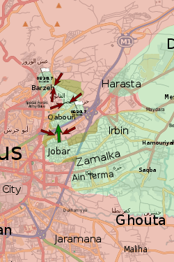 Some medical evacuations of the sick and wounded were successfully completed, and there were reports that transfers of some JAI fighters to Jarablus (in the Turkish-occupied north of Syria) had taken place too, but further negotiations stalled and eventually broke down. JAI reportedly placed new conditions on subsequent transfers and refused to release prisoners it had held captive for several years, and on the afternoon of 6 April it shelled Damascus, killing four and wounding another 22. The assault by the Syrian Arab Army and its allies immediately resumed with a vengeance. A ground offensive was launched under the cover of a sustained air and artillery bombardment broadcast live on state TV.
