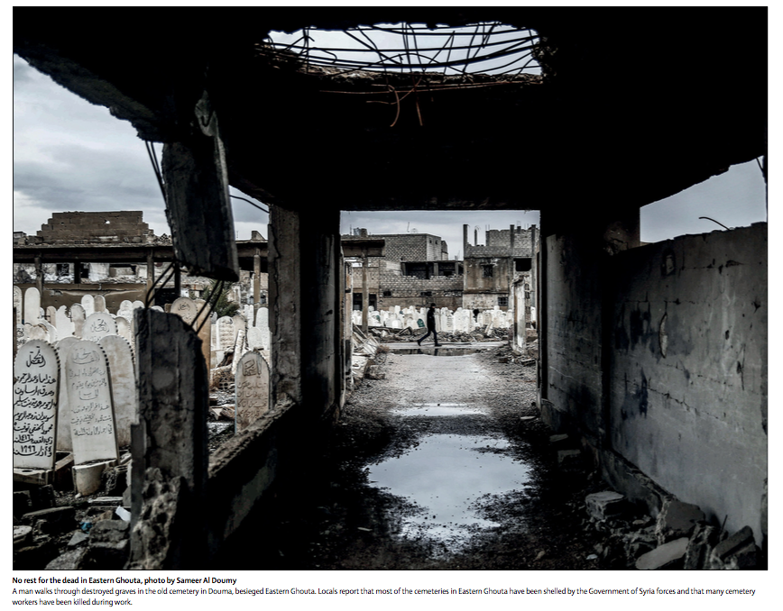 When the bombs started falling on neighbourhoods its teachers and doctors took schools and hospitals underground and ordinary residents put on white helmets and rushed to rescue their friends and neighbours. The people of Ghouta launched inspiring civil society projects, often women-led. They created new media platforms and produced award-winning photojournalism. They created alternative energy resources and introduced new farming techniques…