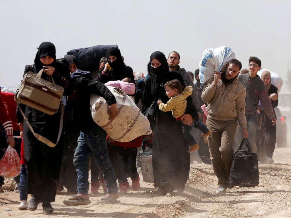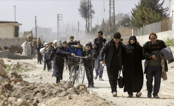 The refugees streamed east towards Hawsh al-Ashaari and newly-occupied government territory aiming for Adra: