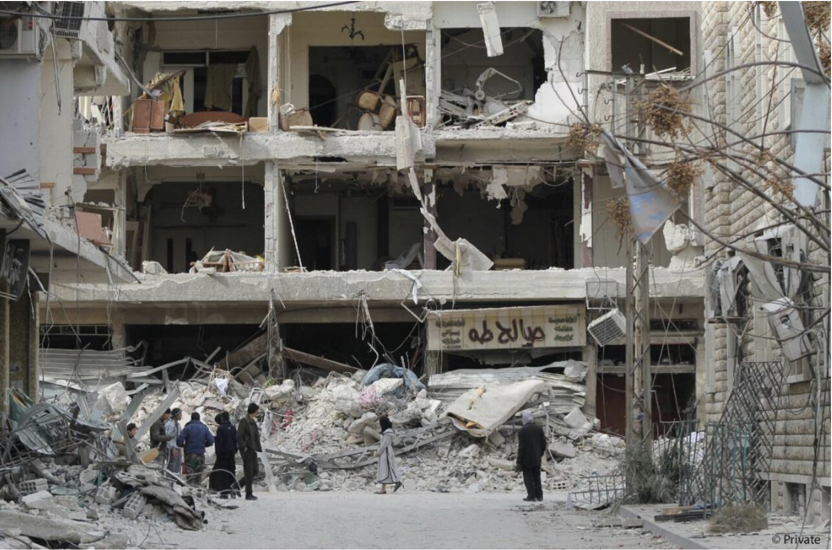 There are few eyewitness reports during this period, but Amnesty investigated ten air strikes in detail that took place between December 2014 and March 2015. Here is one student describing the aftermath of an attack by a parachute bomb on Douma on 5 February 2015: