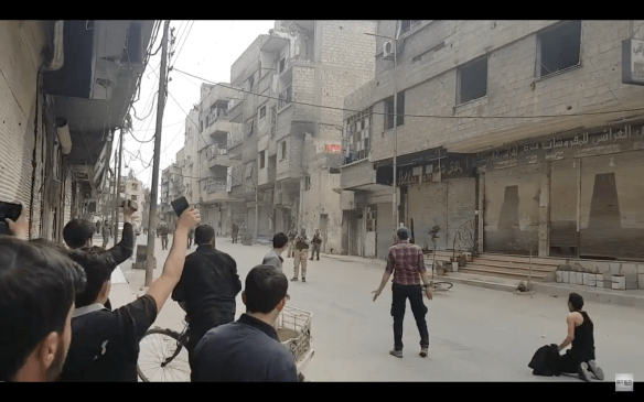 When a deal was reached to end hostilities several days later Misraba was declared a ‘neutral area’ and both JAI and Failaq al-Rahman agreed to withdraw. But by the end of July residents protested that their town was still a military zone ‘surrounded by earthen berms and security checkpoints’ and demanded that all armed groups leave along with their ‘heavy weaponry’. A group of brave women led a demonstration against the continued (para)militarization of the town – according to Syria Direct men did not join ‘because they were afraid of being arrested, beaten or shot’ – and the local (civilian) council backed their demands: