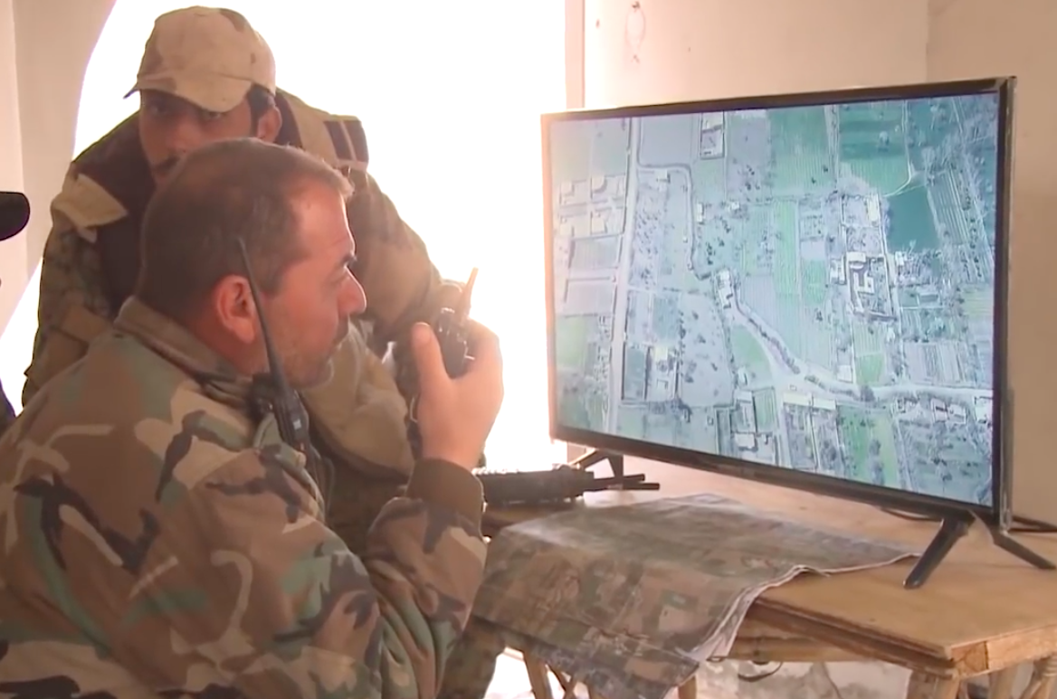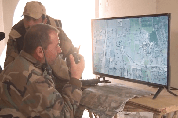 This was a calculated change of strategy. Nawar Oliver explained that over the preceding six years the rebels had become experts in urban warfare (the photograph below shows JAI commanders working with a detailed map of the Ghouta); they knew every square metre of towns like Jobar and Ain Tarma in the west, where pro-government forces had tried time and time again to break through without success: so the Syrian Arab Army and its allies staged this new assault from the east and across open country. The rebels were ready for this too, but JAI accused Failaq al-Rahman of cutting water from the Barada River that was to have flooded a defensive trench system and so accelerating the advance of the Syrian Arab Army. In response, Failaq al-Rahman claimed to have been ‘stabbed in the back’ by JAI which, so it complained, had failed to hold the front line.
