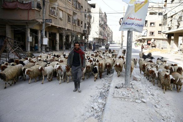 [S]ome [were] accompanied by their livestock as agricultural areas were lost… “The smell of rotten garbage is all around, in addition to animals’ smell,” said Thaer al-Dimashqi, an anti-government activist in Douma who uses an alias for safety, adding that 100 families had flooded into his neighborhood alone. “Sheep and cattle are surrounding my house — imagine, cows are being kept inside houses.”
