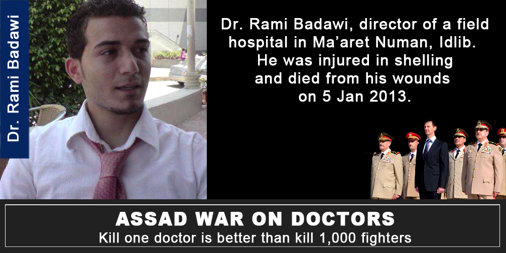 ‘… attacks on doctors silence particularly powerful witnesses. When the Syrian government denies its use of chemical weapons, cluster munitions, starvation, or torture, doctors can bear witnesses to these violations because they have seen and treated the victims.’