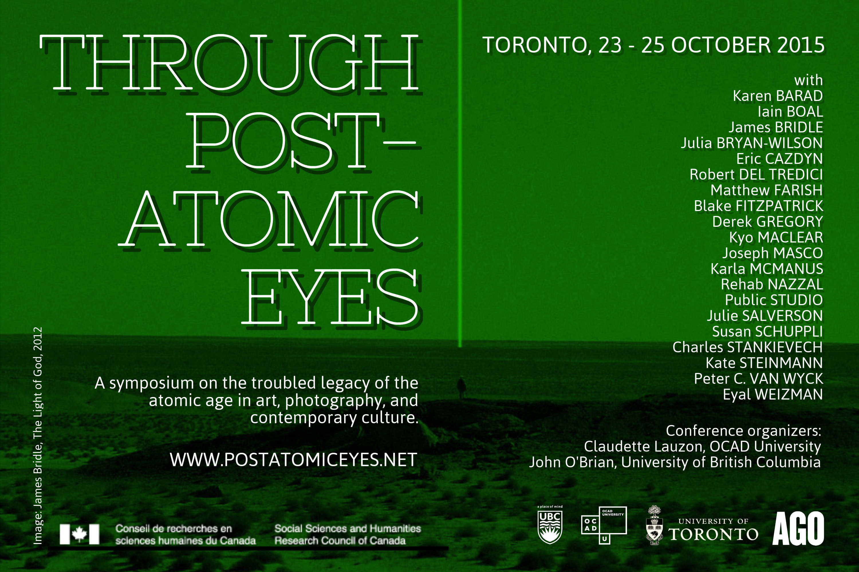 Through Post-Atomic Eyes is scheduled to coincide with John O’Brian’s groundbreaking exhibition, Camera Atomica, the first substantial exhibition of nuclear photography to encompass the postwar period from the bombings of Hiroshima and Nagasaki in 1945 to the meltdown at Fukushima in 2011. Now on view at the Art Gallery of Ontario (until November 15, 2015).